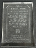 そして、大阪・関西万博の閉幕日(10/13)に万博会場で執り行われた授賞式では、記念のクリスタル盾を授与いただきました。