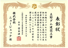 日建連表彰2025において、「土木賞」を受賞しましたのでお知らせいたします。