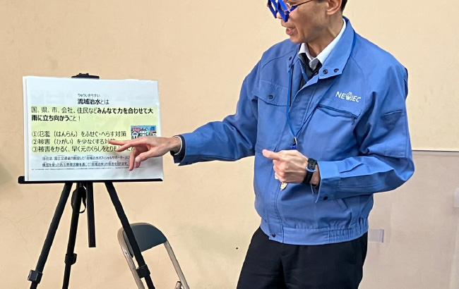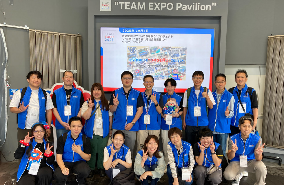 「自然と人を技術で結び、持続可能で快適な未来を創る」を使命とするニュージェックは、防災意識の向上を通じて、発災時に一つでも多くの命を救うことを目指し、防災教育の社内プロジェクトチーム「N-EXPO(ネクスポ)」を結成。小中学校・自治体・地域団体など、さまざまなパートナーと連携しながら、防災教育活動を継続的に展開しています。